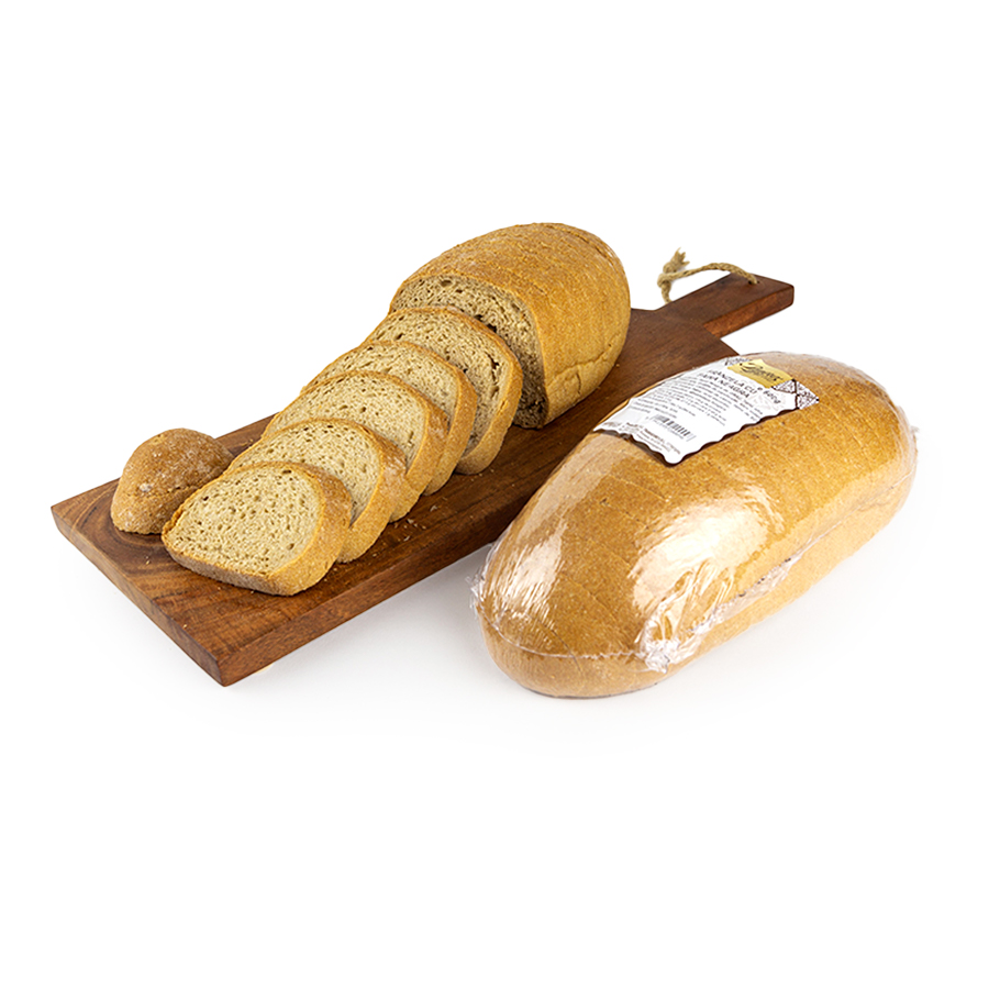 făină neagră de grâu 44,6%,făină albă de grâu 21,1%, apă potabilă, drojdie de panificație, sare iodată, ameliorator de panificație (făina albă de grâu, făină de soia, enzime, acid ascorbic, arome).